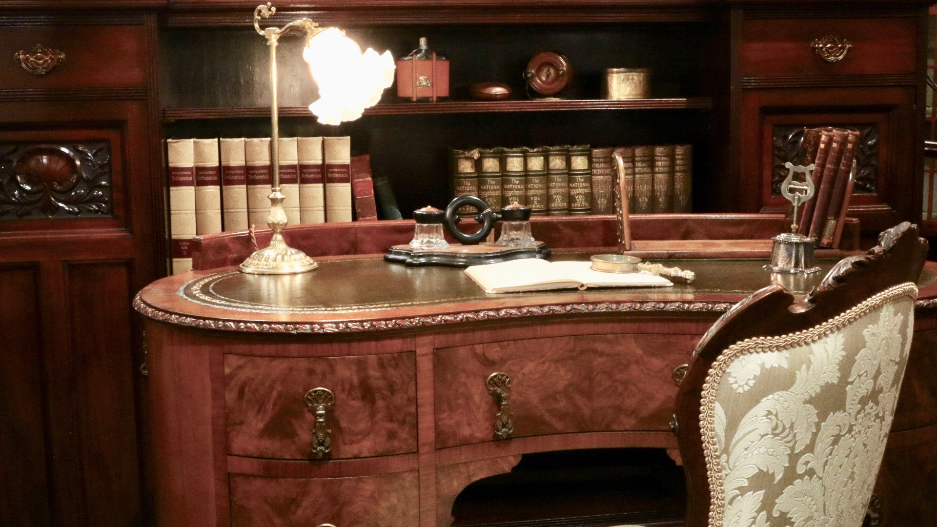 アンティークのパーソナルデスクやライティングビューローの天板によく見られるレザー。