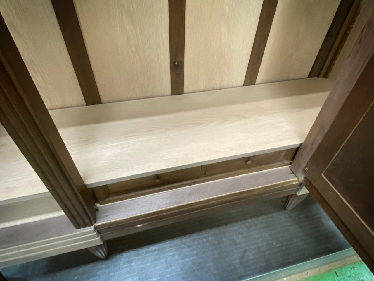 一見するとそれほどダメージがないように見えますが、家具の下部分を中心に長期間湿気にさらされていたことによって生じた化粧板の歪みや剥がれ、また虫食いによる被害が広い範囲にありました。